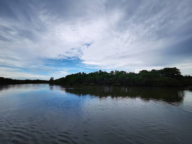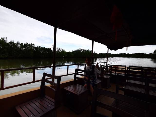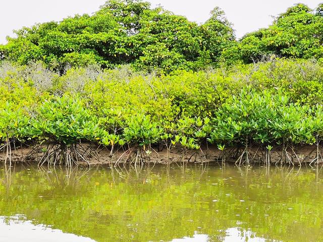 驱车去往东寨港红树林自然保护区,11公里15分钟的车程。整个游览是坐在游船上,来回游览了整个红树林景区。但和想象的红树林不一样,以为是通体红色的树林,听了讲解才了解,原来只是树干会氧化后呈现红色状。