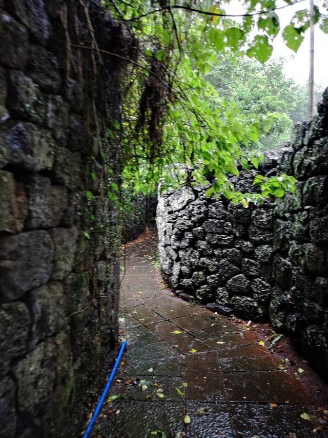 下午两点钟左右,送爱人到考场后,带着女儿直奔“火山口国家地质公园-雷琼世界地质公园海口园区”,大约15公里,路上一直下着瓢泼大雨,到公园门口后,宝贝睡着一直没醒,我就计划不进公园,而到周边的火山民居古村落看看。地图上一搜石山镇荣堂村是个火山民居,5公里左右,就导航过去了,但是没想到会这么难找,费劲了周折(盆友们可以直接导航荣堂七十二洞),古村落要穿过新的民居,也不是旅游景点,也没有标注,所以特别难找。终于找到后,宝贝还在睡着,没有急于叫醒,下车看了看周围的情况,古村落的村口有个看上去有些智障的男子过来跟我搭讪,说的当地的方言,听不太懂,但后面跟我要钱我连听带看的明白了,要20元钱,我想应该是他借此谋生的方式,就给他了20元钱,他乐呵呵的给我烟抽,我不吸烟,就笑着拒绝了。这时女儿醒了,雨一直下的挺大,我俩穿上早已准备好的雨衣开始了探险之旅,特别特别的震撼……