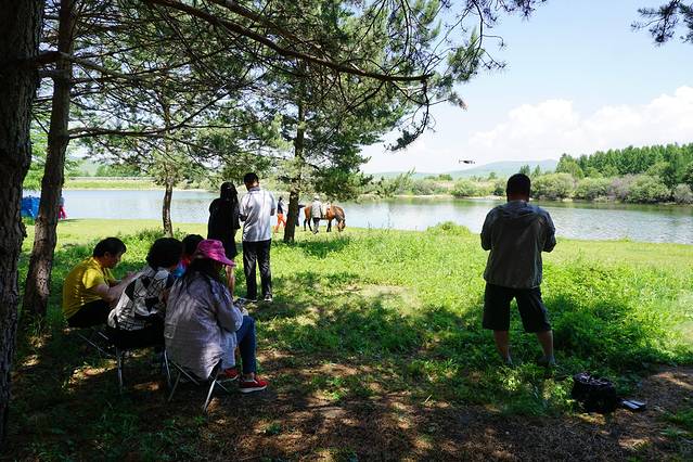 第二次是下午,暴晒,我们选择登平台,俯瞰七星湖,并用无人机拍下了它的照片。