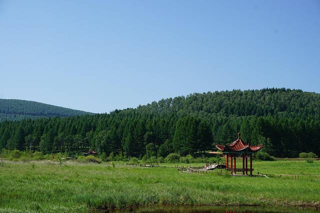 神龙潭是塞罕坝风景区内的著名景点之一,是《赵氏孤儿》的外景地之一,这是一汪净水,茂密的松杉伴着翠绿的草场一起拥抱着碧水,更使神龙潭野趣横生。漫步在栈桥上,眺望漫山的林海和湖畔的湿地,放空心灵,让人沉浸在这一份悠然自得之中。