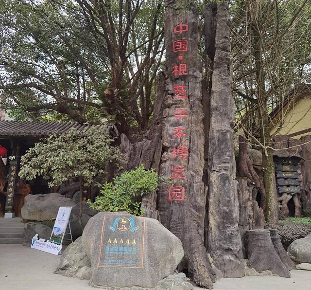 来到大门口时,就可以轻易看到显眼的“AAAAA”级景区石碑,景区整体也是以根艺为主题,装修全以根雕为主,可见根文化浓厚。