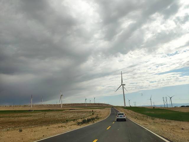 路上很少车辆,一路驰骋。偶入一片风车地。