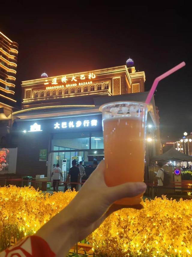 下机后联系租车店的人来机场接我们,到店里去取车。两辆车一前一后,奔向人民医院,需要在当地做核酸检测报告以便后续通行方便。核酸检测80块加血液检测好像140,当天就能出结果,我们入住了市中心如家酒店,休整补眠。6点多兵分两路,一路去去报告,一路去大巴扎!大巴扎就是新疆当地的夜市步行街,好不热闹!无论食物还是饰物都带着浓郁的异域风情扑面而来,心情瞬间好到爆棚。旅行的意义,就是体验不同的生活。
