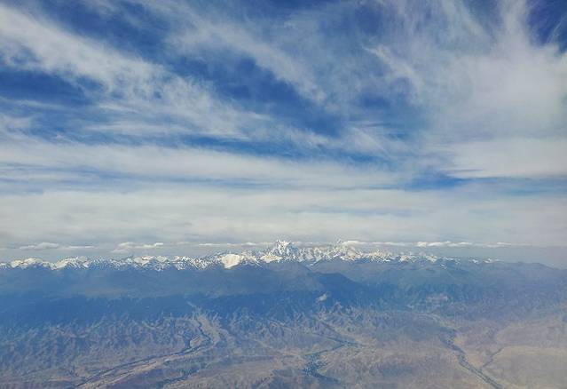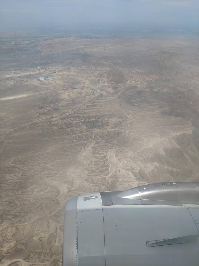 一大早五点多的飞机从上海到乌鲁木齐,历时五个多小时。从空中看新疆,大片大片荒芜之地,没有植物没有动物没有人类,只有无边无际的黄色荒漠。初见时,有些震撼。也可以看到远处的雪山,寂静而威严。