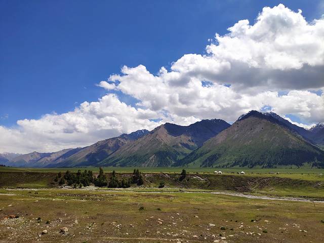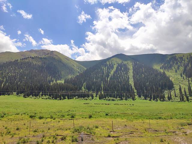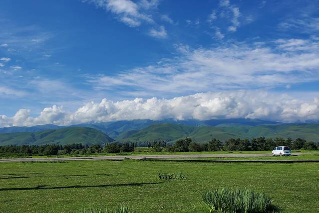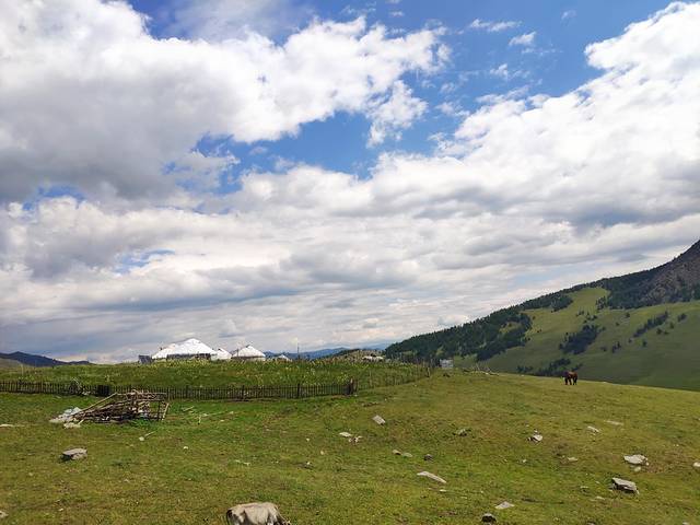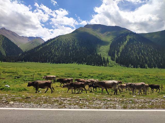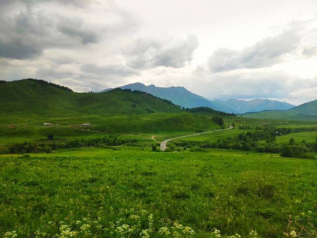 原计划是冲巴音布鲁克湿地公园的,但是路上碰到与我们行程返回来的游客,告诉我们进入巴音布鲁克地区的检查站排起了无比长的对,至少要几个小时,而且天空下起了雨。于是我们立马改变行程,奔向那拉提草原,那拉提是蒙古语,意思是太阳最早升起的地方。