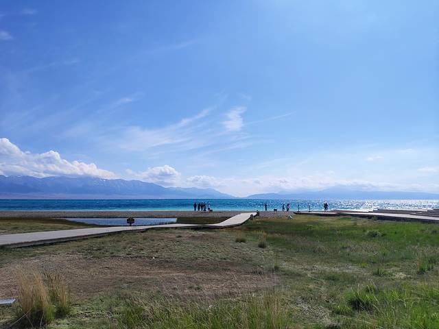 赛里木湖是可以自驾直接环湖的,车的票和人票是要分开购买(门票70 区间车75 自驾车5座 375)。自驾最佳悠闲环一圈,每隔一段都可以停车,有木栈道可以静静的欣赏湖,波光粼粼的水面,那好看蓝色,跳跃的光,好像小精灵,我从未见过这么好看的蓝色湖面。