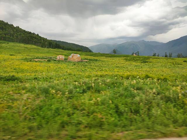 中午退房后带着行李箱回到村子中心等待景区车,然后又开始一整天车程,离开阿勒泰地区。前往下一站,奎屯。