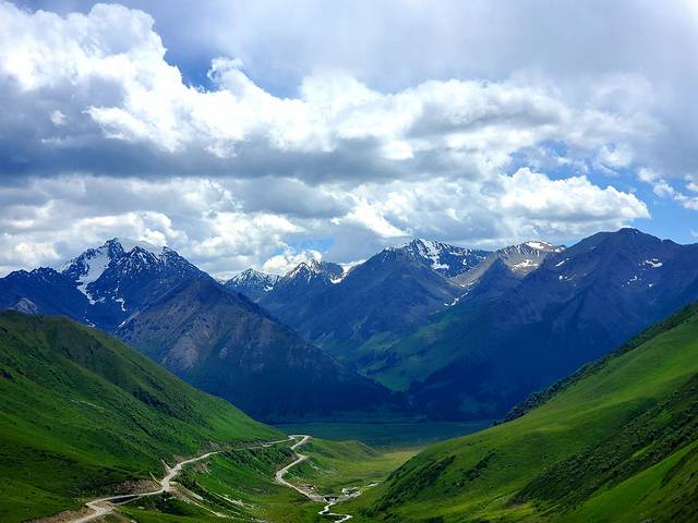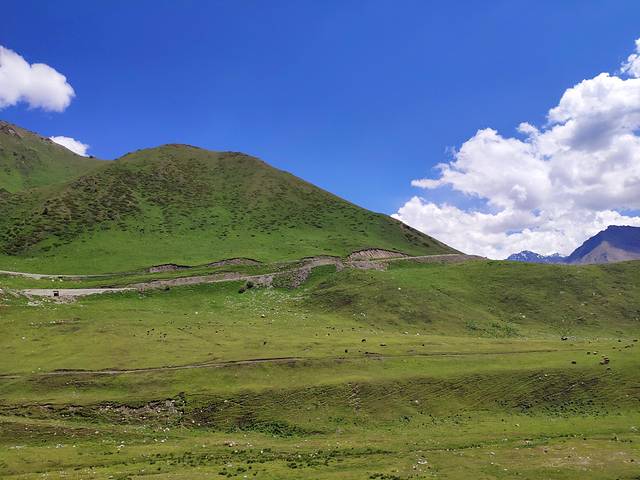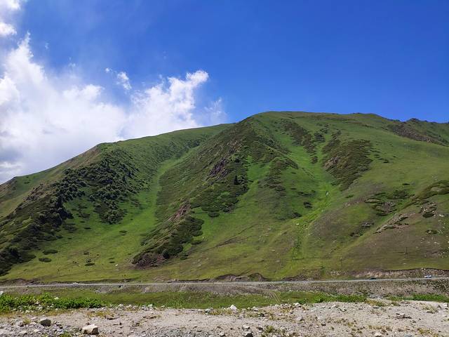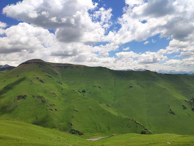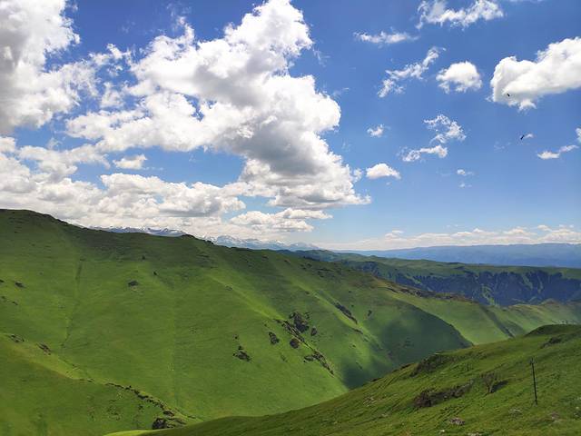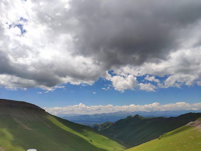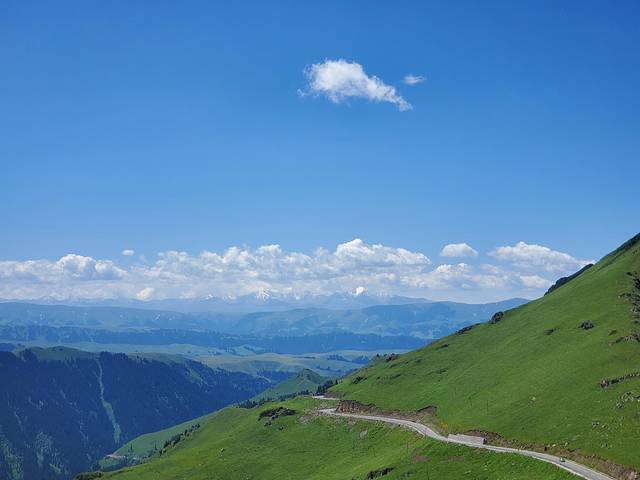 出发时小插曲,一辆车爆胎,使得我们一辆车先行,另一辆先去修车后再行。导航开始后,沿着盘山公路九曲十八弯迂回向上,对车技的要求蛮高哈。于是视野逐渐开阔起来,山路转弯处感觉置身半空中,非常刺激,远处的云朵好像翻滚着冒出了一团一团,山的绿色太鲜活了,天空那么高远又湛蓝,我们开始沉浸在大自然的美景里,不敢眨眼只有不断的哇哇赞叹声。