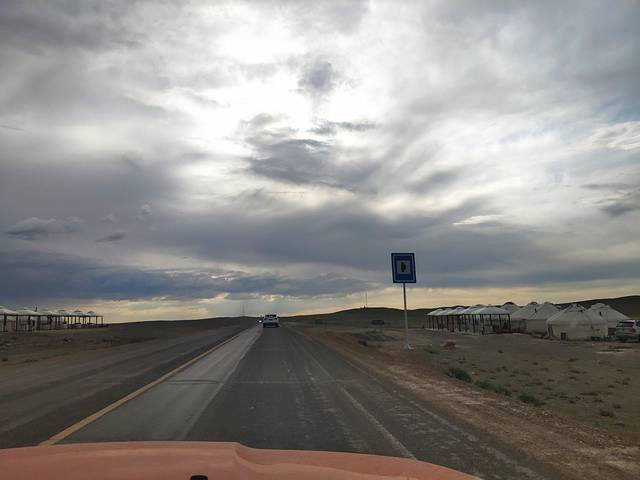大概旺季这些蒙古包里会出售当地特产,我们无缘咯。此时已是晚上十点,天空仍然亮着,我们追着太阳向前去。