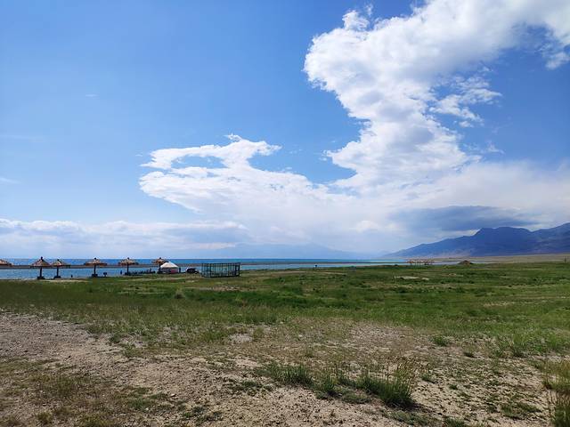 赛里木湖,大西洋的最后一滴眼泪啊,清澈透亮。阳光下是清透的tiffany蓝,大概是冰川水融化而来的原因,湖水非常非常冰冷,靠近有种寒气彻骨的感觉。本来我们带了好看裙子,但是那湖面吹来冰冷的风劝退了,连下车也需要勇气,感觉脑袋都被吹懵了。夕阳下,湖水的颜色慢慢变成深蓝幽静,像深夜的天空,浓郁而沉静。
