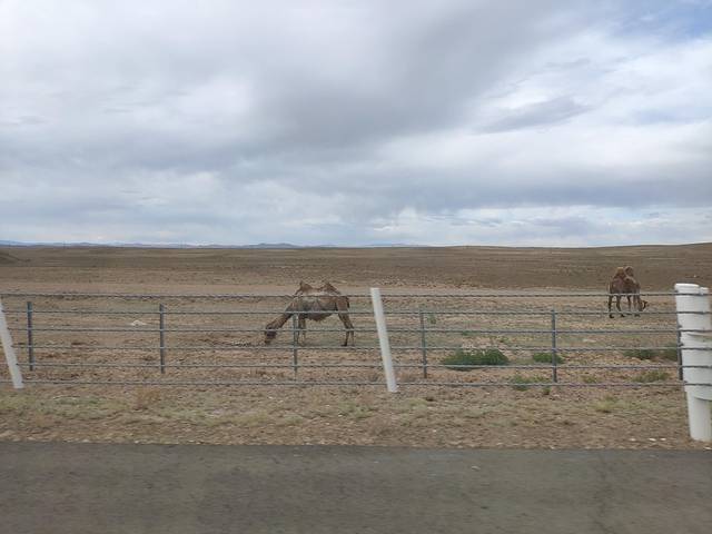 刚出乌鲁木齐市,地面是有些绿色的,时不时出现一些骆驼,马儿。