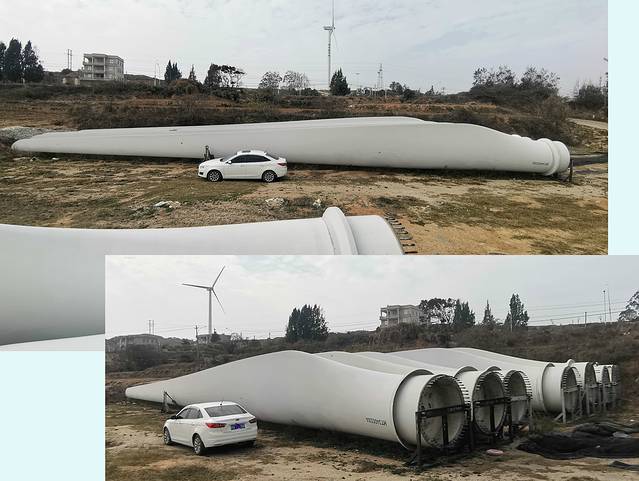 驶往度假村路边的空地上,摆放着长长的风车叶片,这是建造海上风力发电用的,每片叶片长达30多米