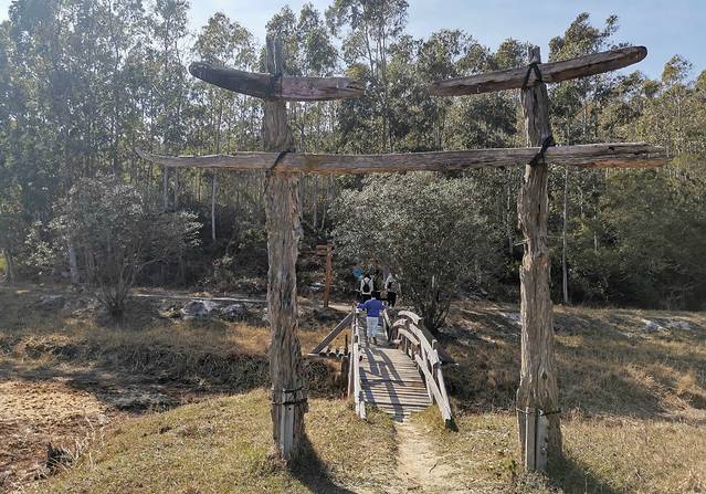 小木桥走上去有点摇晃,但并不影响凹造型的心情