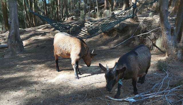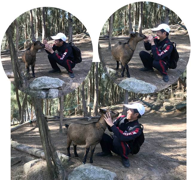羊儿也跟到吊床边来了,羊很顽皮,跟它友好的打招呼却差点被吻上呢