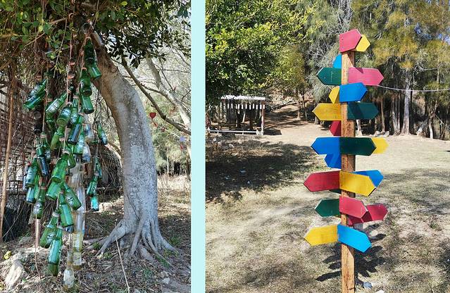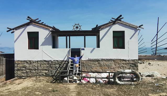 有着蓝天海水的陪衬,利用废旧物品的混搭造型充满了文艺范