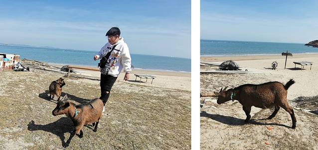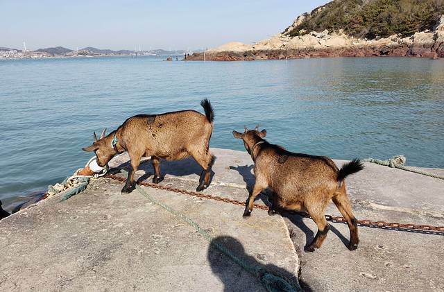 岛上有很多羊,满山遍岛的放养着,似乎牧主不要怎么打理就可以坐享其成似的。有意思的是其中两只羊,从东田沙滩游玩至返回码头上船,跟我们相处近一个钟头