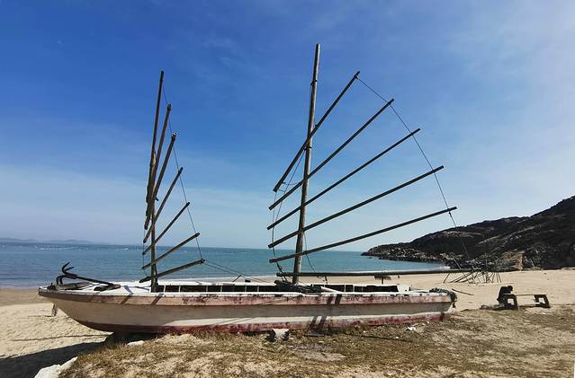 东田沙滩距离码头约2千米,步行30分钟到达,这里沙质优良,很适合露营与看日出;如果要看日落,得选择1千米外的南大澳沙滩