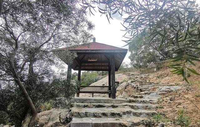 沿着登山步道,可以登上虎头山,在“静心阁”中歇息