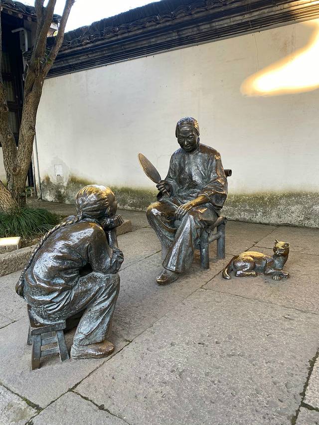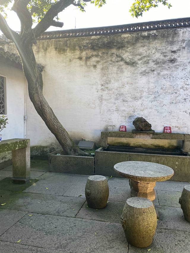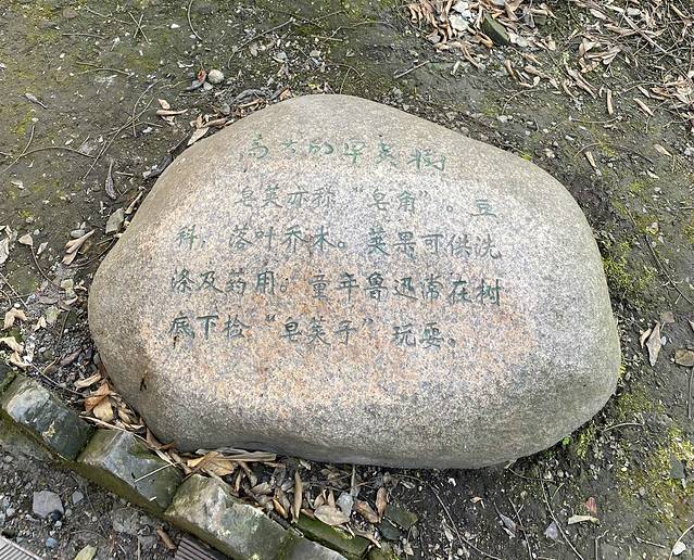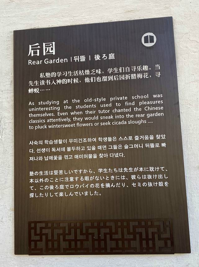 三味书屋后面有一个小园子,园内种有两株桂花和一株腊梅,当年鲁迅和小伙伴常在这一方小天地里玩抓蟋蟀、找脱壳的蝉蜕,看蚂蚁背苍蝇等游戏。