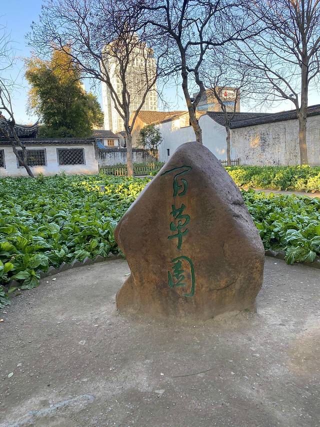 对于百草园,鲁迅曾在《从百草园到三味书屋》这篇著名的散文中作了非常形象生动的描述。文中他无限深情地写道:“不必说碧绿的菜畦。光滑的石井栏,高大的皂荚树,紫红的桑椹……单是周围的短短的泥墙根一带,就有无限的趣味。”现在我们所看到的百草园就是鲁迅当年笔下的景致。鲁迅12岁时被家人送到三味书屋读书,不得不与他的蟋蟀们、覆盆子和木莲们告别,去全城最严厉的私塾读书。