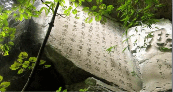 除了原生态的自然风光,漫山如雪覆盖的李花,观音岩附近的耍事也不少。除了千年桃李林,还有古刹宝林寺、千年写字崖、古驿道、千年梨树王、观音庙等丰富的地理历史文化资源。千年写字崖也很有特色,千米的石崖,被藤蔓和荆棘遮掩,各种碑文、题记隐藏其中,最出名的要数“忍”字崖了