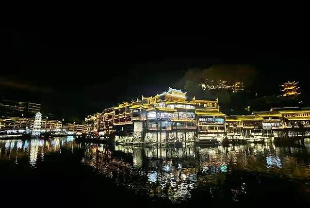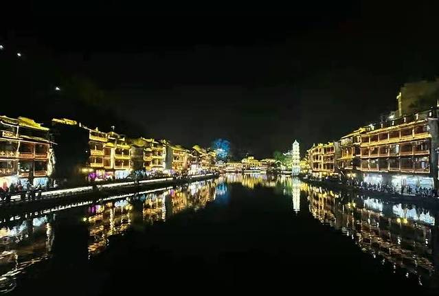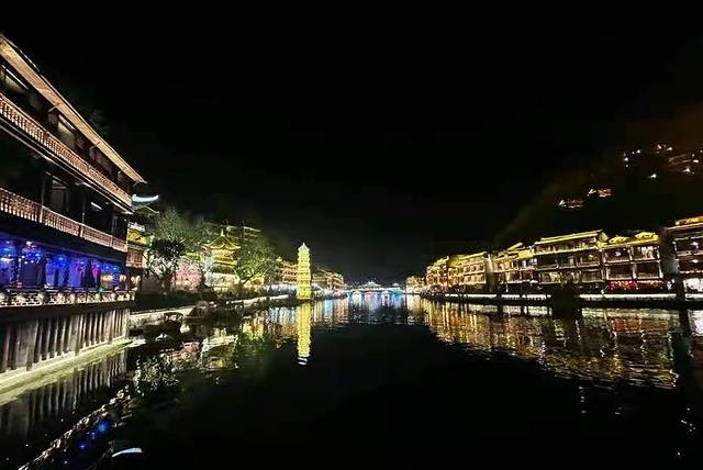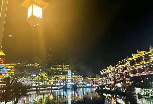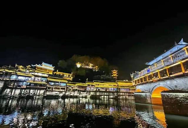 在十里画廊坐环保车出到景区的另一个大门(武陵源门票站),因为我们人多便包了一张面的直奔张家界(120元/部),买好17:30张家界开往吉首的火车,在火车站与向导道别,经过差不多2小时的车程在晚上七点半左右到达吉首。为了节约时间下了火车后,我们又租部面的直奔凤凰古城(120元/部),到达凤凰大约晚上九点。由于是淡季,很快找了家旅店住下,去拍摄凤凰古城的夜景。