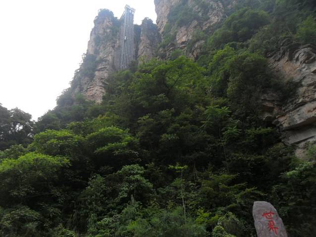 走走停停将近一个多小时后,遇到分岔口,右边是去水绕四门。左边石阶一直往上爬是后花园(袁家界的一个景点)。向导问我们是爬上山还是走到水绕四门坐百龙天梯上山,由于想节省体力,而且也想看看更多的风景,我们一致认同坐百龙天梯。后半程我们又走了将近一个小时,从水绕四门坐环保车到百龙天梯,天梯72元/人,向导有导游证在景区门票电梯索道全都不要钱,我也好想去考张导游证,以后玩起来多爽啊。