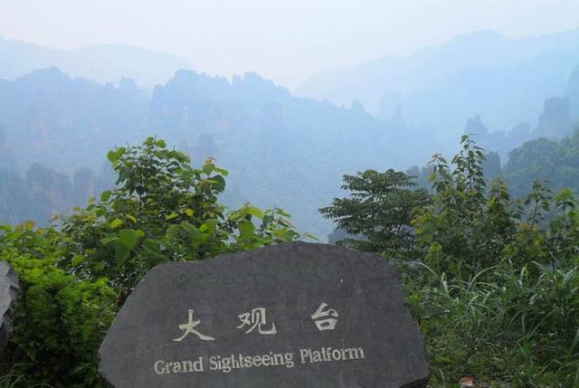 第二天大观台:仙人桥——天子座——一步难行;下午杨家界景区:乌龙寨——天波府 第二天起床,向导告诉我们,昨天晚上下了雨。今天有可能看得见云海,要看风向好不好了。那一霎我们像是发现了新大陆,匆匆吃了早餐,便在向导的带领下去了大观台景区,刚到那里,一股冷风吹过来。好冷啊。另外好像看云海的机会也要破灭了,这里竟然没什么雾,山里面真是每个地方都不一样啊。