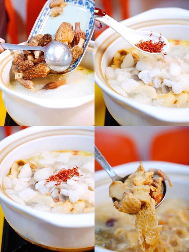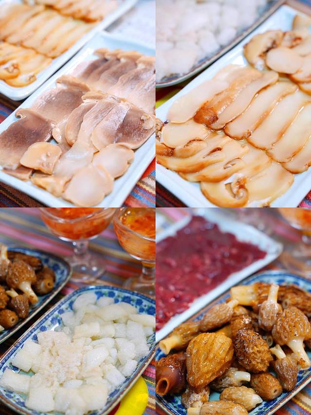 再下入老人头菌、羊肚菌、竹荪菌和松茸。汤头本来就很浓郁,煮了菌子之后的汤个更加鲜美了~
