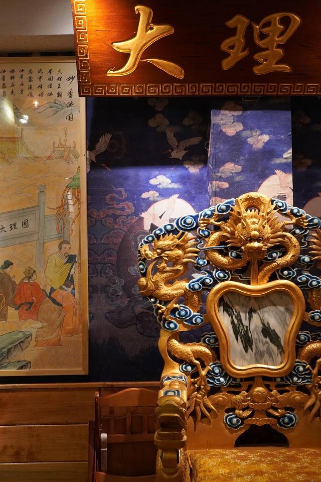 店里有一把龙椅,后面写着大理国,免费拍照打卡好地方。