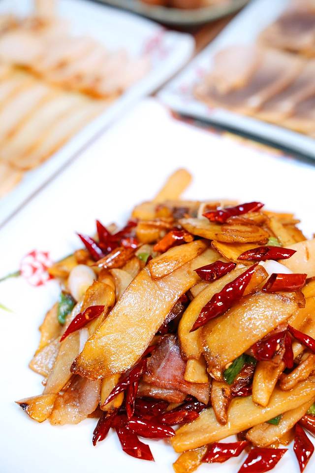 这道菜名字很特别,好奇心驱使我点了它。原来见手青是一种稀有珍菌,加入干辣椒和腊肉爆炒过后有不同的风味,口感像杏鲍菇,喜欢吃辣的伙伴可以备注加辣哦~