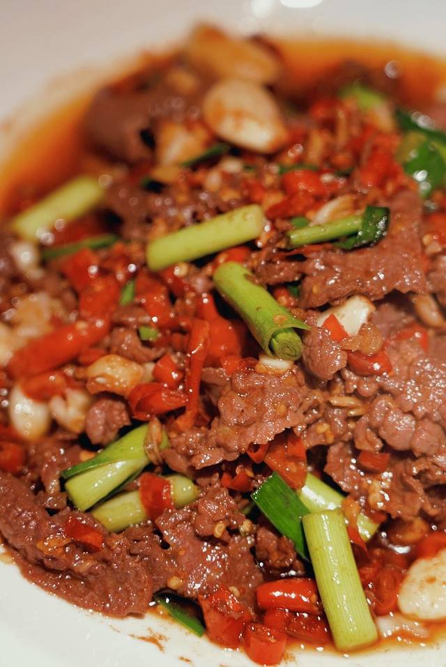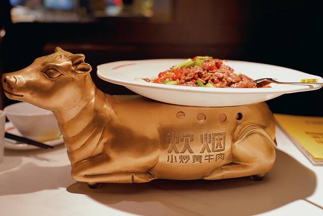 它的牛肉,是盛放在一个牛形的加热容器里的,盘子底下有一个小蜡烛,所以牛肉会越吃越入味,越吃越辣,越吃越停不下来!鲜亮的色泽,热辣的香气,这是什么神仙牛肉?当然好吃的不止这个,软糯鲜香的香芋排骨、好吃又好玩的皮蛋辣椒擂茄子、鲜嫩可口的青椒炒牛肝菌,我觉得都ok~