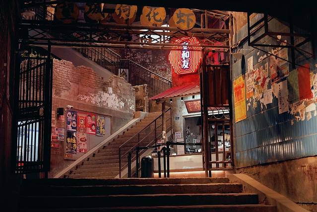 外露的破旧楼道,复古感极强的招牌和霓虹,四方桌在每层楼排列着,将整个老长沙市井社区呈现在了眼前。在这里,你能看到各种热闹、市井、放肆的百味人生,也可以看到老长沙的城市韵味与烟火气息。文和友创造性的完成了两列穿行整个空间的室内缆车,使得原来处于静态的空间由于缆车的加入变得多元和动态,你可以边排队边在里面穿梭时空。