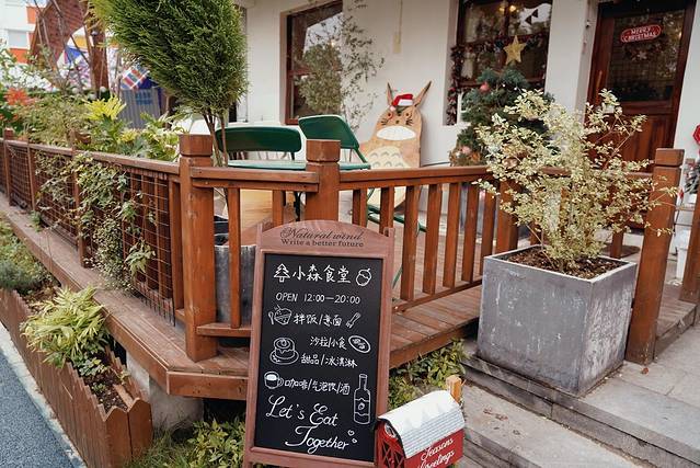 这是一家森系的咖啡店铺,每个装饰都很可爱,外面还有可爱的龙猫装饰物。文艺的日式小店一下子就能拉拢女孩们的心,小森食堂也不例外。小森食堂更有生活的感觉,这里更像个温馨的小家。