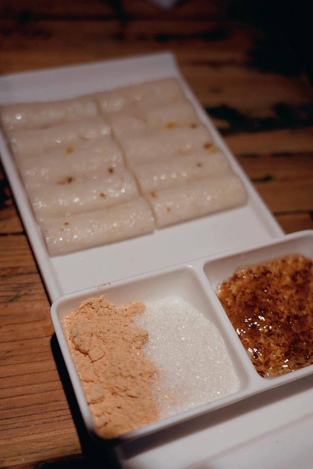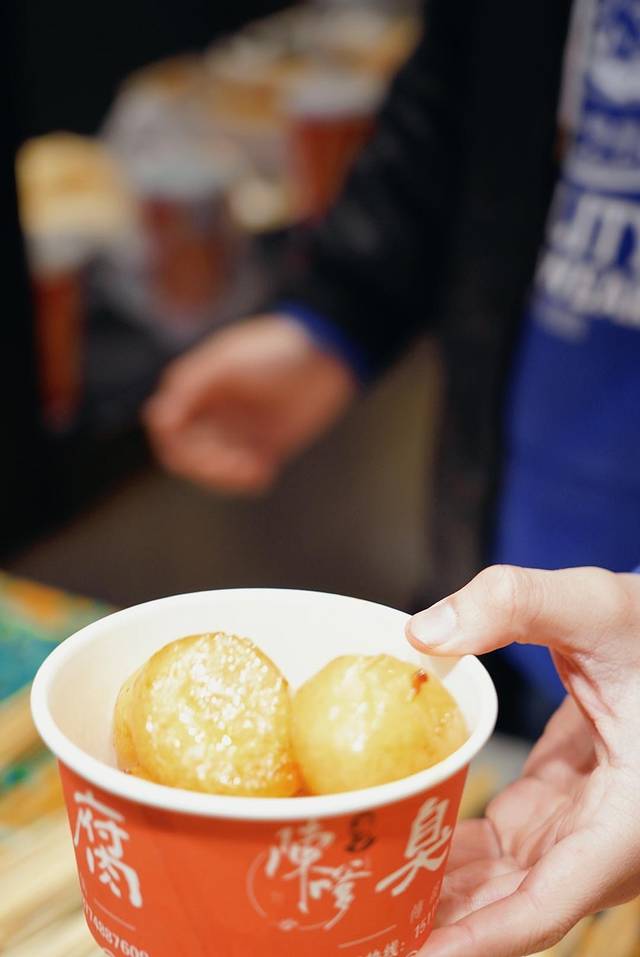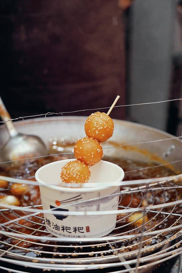 最初的糖油粑粑在油锅中炸得金黄脆嫩,咬上一口,酥脆的外壳下白白的糯米团,糖丝拉得老长,软得粘住了嘴巴,这也是在街边常能吃到的一种。之后糖油粑粑经过改良,将搓好的糯米砣入糖汁中煮沸入味,避免了油炸过后产生的硬壳,静静躺在浓糖汁当中的糖油粑粑,色泽红亮,犹如蛋黄饱满圆润,保留了糯米的原汁原味。