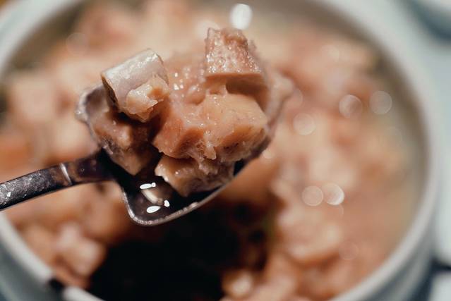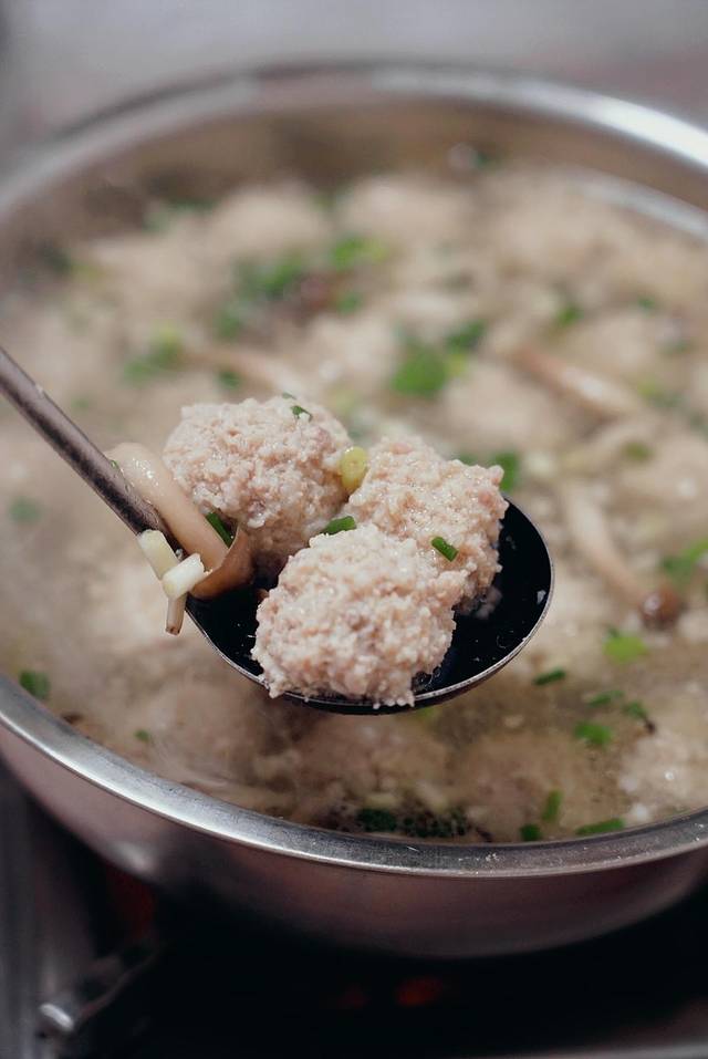 手工剁了3个多小时的肉捏成肉丸,然后再配上熬制6个多小时的猪大骨汤,最后煮一点菌菇,让菌香味潜入汤汁,渗入肉中,整锅就是个香味大满贯。