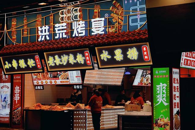 长沙的霓虹灯牌被镶嵌在墙面上,太有趣了,店内不仅有乔伯凉面,任姨手工水饺,毛姨鸡爪,黄大侠泡茶,巷子猪脚等街巷小吃,更有文和友周边的龙虾,辣椒,槟榔,臭豆腐也是代表。