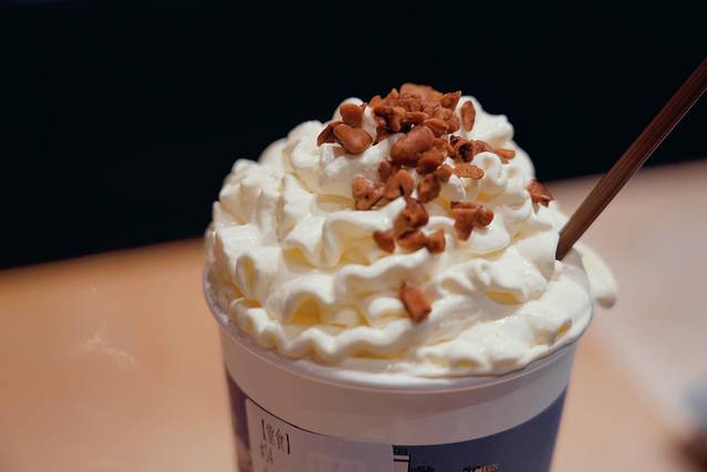 幽兰拿铁拥有恰到好处的甜度,红茶的清香和牛奶的醇香平衡把握的刚刚好,喝一整杯都不会感觉腻,上面的碧根果碎和奶油中和了红茶的涩,喝下去也太快乐了!