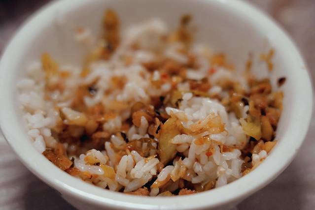 米粉店里最精彩的其实是配料区,剁椒酸菜酸豆角腊八豆干辣椒面……更硬核的会直接给一大盘猪油渣。它们能让米粉吃出一场盛大的宴席感。配料每家各异,调味品倒是很统一。店家仿佛规定过一般,醋只用本地的玉和牌,酱油指定要龙牌。我们点了排骨粉,味道吃过才知道!