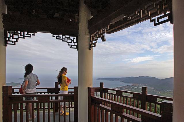由于时间的关系,我首先选择了三亚鹿回头风景区,鹿回头风景区位于三亚市南3公里处,是海南岛最南端的山头。这座山三面临海,状似坡鹿,高275米,登上鹿回头山顶,三亚市全景尽收眼底。