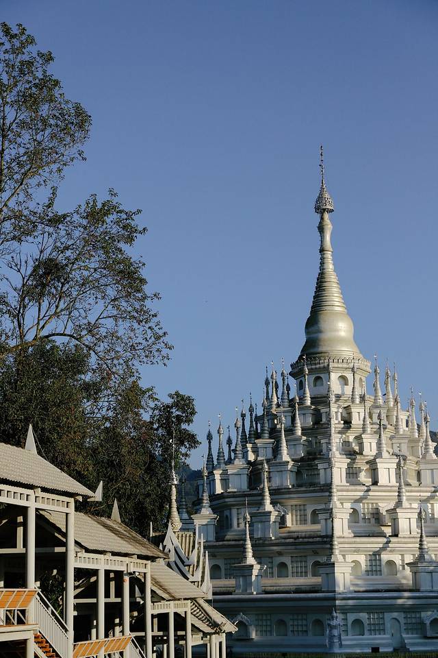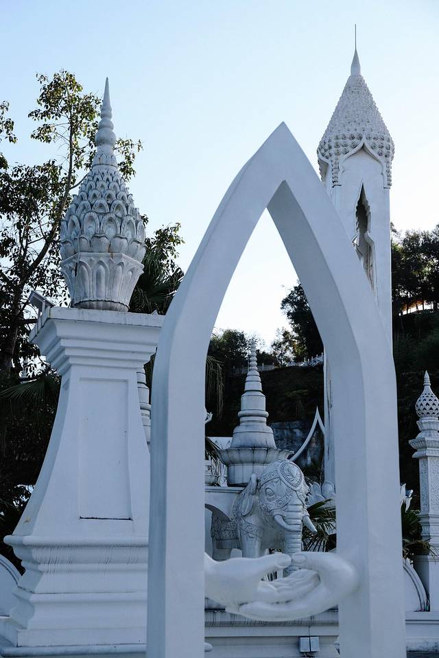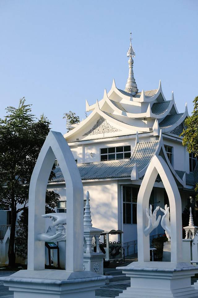 银塔是实心的,无法入内只能外部观看,塔体有一种对称的美。每个塔尖都挂着风铃,风吹来会发出很悦耳的声音。