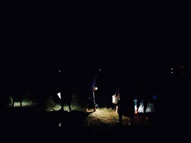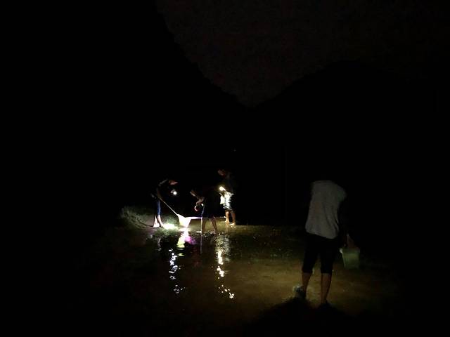 晚上8点时分,和隔壁青旅的朋友以及隔壁的隔壁青旅的老板组成了一组捉虾小队,拿着手电拿着网,向着漆黑池塘进发。