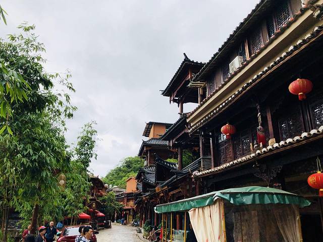 看到的都是一派崭新的民族式房屋,用作饭馆客栈和一些纪念品小店