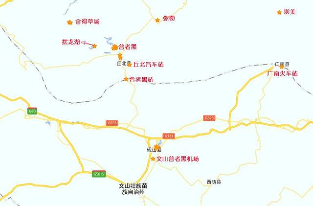 文山普者黑机场位于文山与砚山之间,靠近砚山。