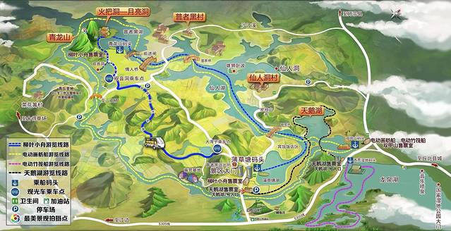 青龙山距离普者黑村步行约十分钟,这里算是普者黑比较成熟的一块,各种设施(路标、公共卫生间等)都比较完备