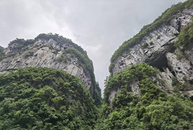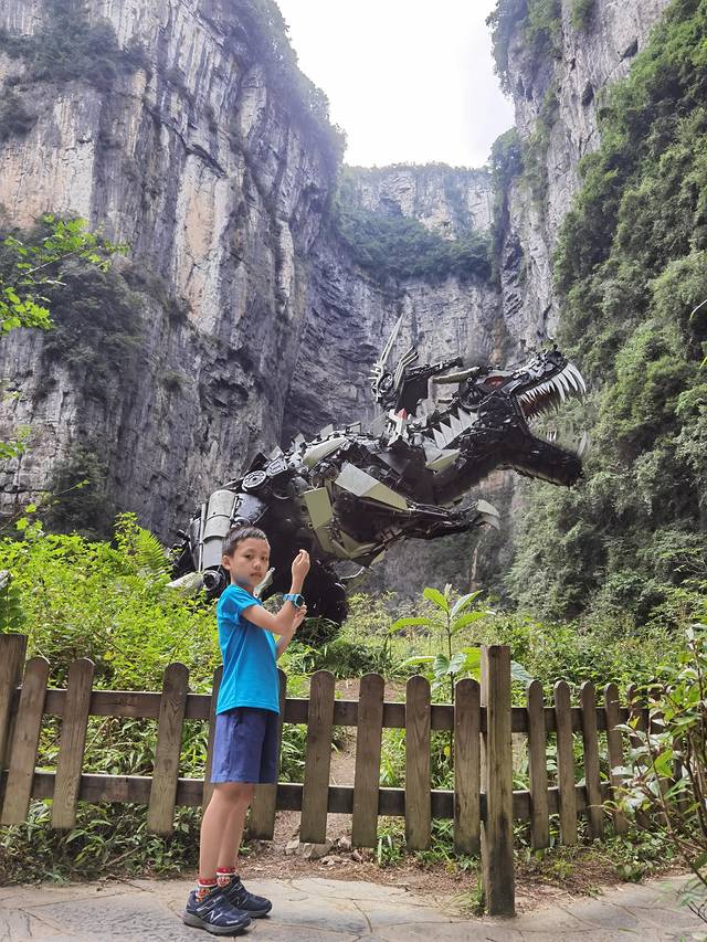 站在峡谷下面看周围的景色也是蛮特别的,天然形成的除了三座石桥之外,还有几座形状奇特的山体 ,如:大鹏展翅、鱼跃龙门等,尽显喀斯特地貌的雄伟壮观。按次序走过三座石桥之后,就是通往出口的道路,这里可以支付15元/人乘坐景区电瓶车出去,但是步行走上去的话也是花个十来二十分钟,不会很累。