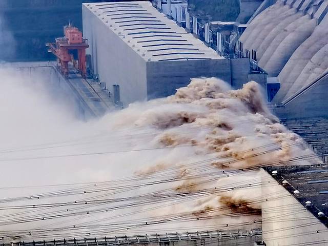 50年一遇的洪水经过三峡,刚好看见三峡大坝正在泄洪,气势非常磅礴。