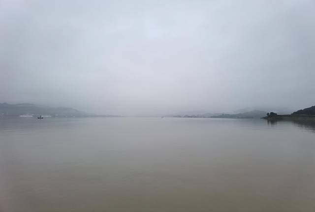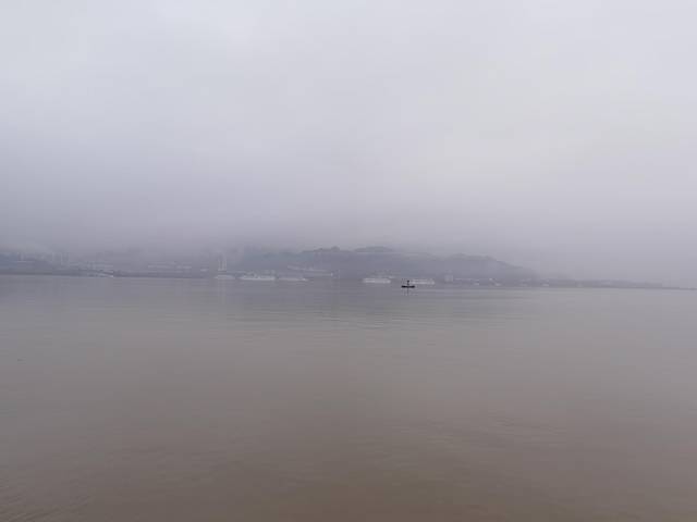 清晨的长江江面上大雾弥漫,宛如一幅油墨画。