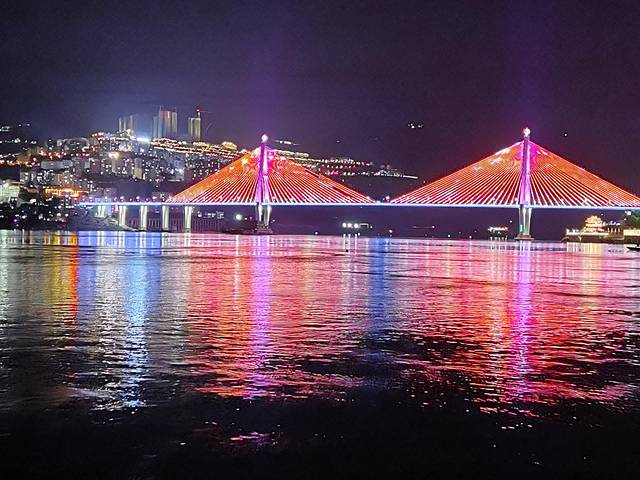 站在船上看万州长江两岸的风景,夜色很漂亮。