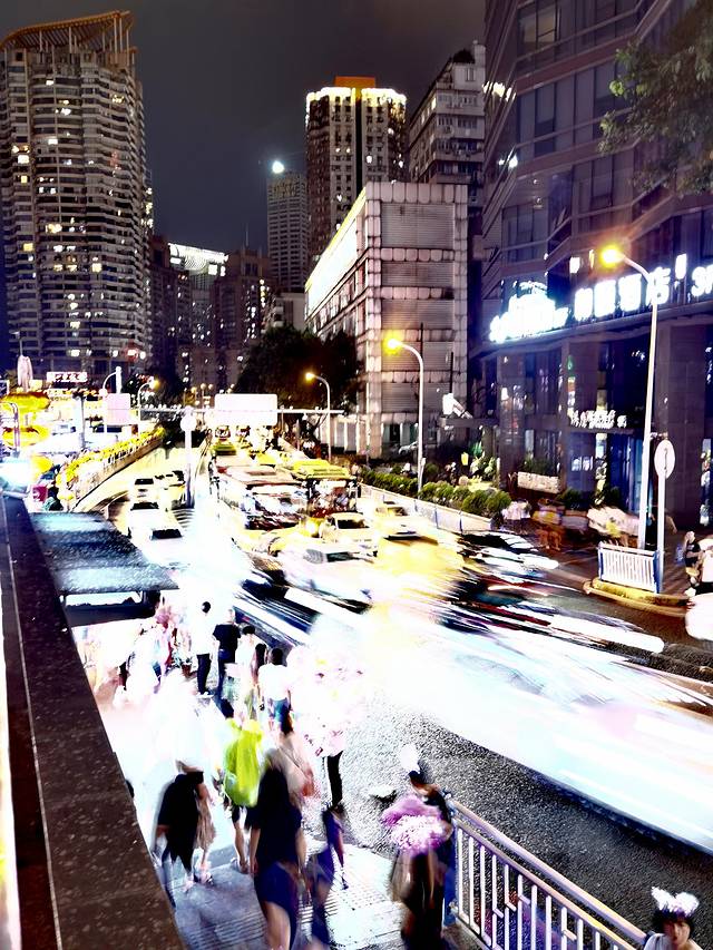在酒店办理完入住,小息了一会儿之后我与儿子就去附近的解放碑步行街逛街。我还是第一次来到重庆,由于是山城,这里的马路很多是斜坡。解放碑步行街附近很繁华,道路的设计和周围的高楼林立,让我感觉这里像个“小香港”,也许已经赶超香港了。到了晚上,这里更是五光十色,耀眼缤纷。步行街很长,分为购物街,小食街,规划得很有条理。小食街里面几乎每一个店铺都要排队,仔细观看,这里每一家卖的东西都不一样,各有特色,比广州号称全中国第一条步行街的 “北京路” 和 “上下九” 要出色很多,不禁赞叹内地城市的发展已经要赶超沿海城市了。